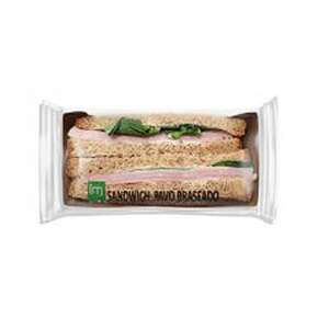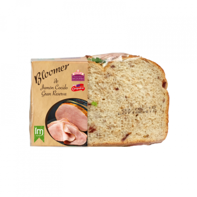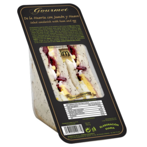 Pan integral frutos rojos del bosque Oroweat (45 %) [harina integral de trigo, agua, harina de trigo(24 %), gluten de trigo, levadura, azúcar, arándanos desecados (2,3 %), semillas de lino marrón (1,9 %), aceite vegetal (girasol), sal, semillas de girasol (0,6 %), copos de AVENA (0,6 %), semillas de chía (0,4 %), semillas de lino dorado (0,4 %), conservadores (E 282, E 200, E 202), frambuesa desecada (0,24 %), vinagre de vino, emulgentes (E 481, E 472e), agentes de tratamiento de la harina (E 300, E 341)], jamón cocido extra (42 %) [jamón de cerdo (80 %), agua, sal, estabilizantes (E 451, E 450, E 407, E 415, E 420), azúcar, dextrosa, especias, aromas, antioxidantes (E 331, E 316), conservador (E-250), recubrimiento decorativo (gelatina de cerdo, colorante E 150b)], lechuga mezclum (8 %) (escarola rizada, radicchio, lollo rojo y brote de espinaca) y crema de ciruelas (5 %) [queso blanco pasteurizado (LECHE de vaca, nata, fermentos lácticos y sal), mayonesa (aceite de girasol, agua, aceite de oliva, yema de HUEVO, vinagre de vino y sal), vino moscatel, ciruelas deshidratadas (4,56 %), azúcar y conservantes (E 202, E 211)].