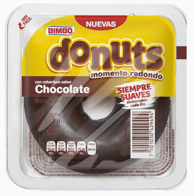 Harina de trigo, grasa vegetal (palma), azúcar, grasa vegetal totalmente hidrogenada (palmiste), agua, cacao desgrasado en polvo (4,1%), lactosa, jarabe de glucosa y fructosa, levadura, huevo líquido, emulgentes (E 322, E 471, E 492, E 472e, E 481), sal, dextrosa, gluten de trigo, harina de soja, almidón (trigo), leche desnatada en polvo, estabilizantes (E 412, E 341), conservador (E 200), agente de tratamiento de la harina (E 300), aromas.