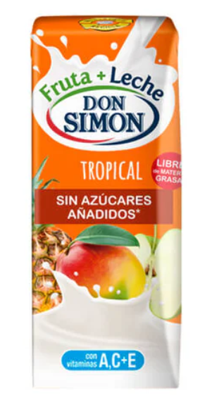 Agua, zumo de frutas parcialmente a partir de concentrado (aproximadamente 35%) (piña, uva, mango y manzana), leche desnatada (10 %), estabilizante (E 466), acidulante (ácido cítrico), aromas, colorante (betacaroteno), vitaminas A, C y E, y edulcorante (sucralosa).