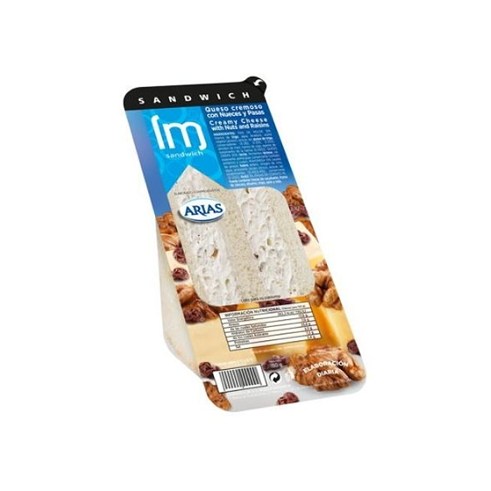 Pan de molde (harina de trigo, agua, levadura, aceite vegetal de girasol, azúcar, sal, gluten de trigo, conservadores E 282, E 200 y E 202, almidón de maíz, harina de soja y agentes de tratamiento de la harina E 300 y E 920), queso crema (30 %) (leche pasteurizada de vaca, nata, fermentos, sal y estabilizantes E 466, E 406 y E 417), salsa fina (agua, aceite de girasol, huevo entero, vinagre de vino, acidulante ácido cítrico, azúcar, sal, estabilizantes E 412 y E 415 y conservante E 202), nuez (3 %) y pasas de Corinto (1 %) (uva secada y aceite de girasol).