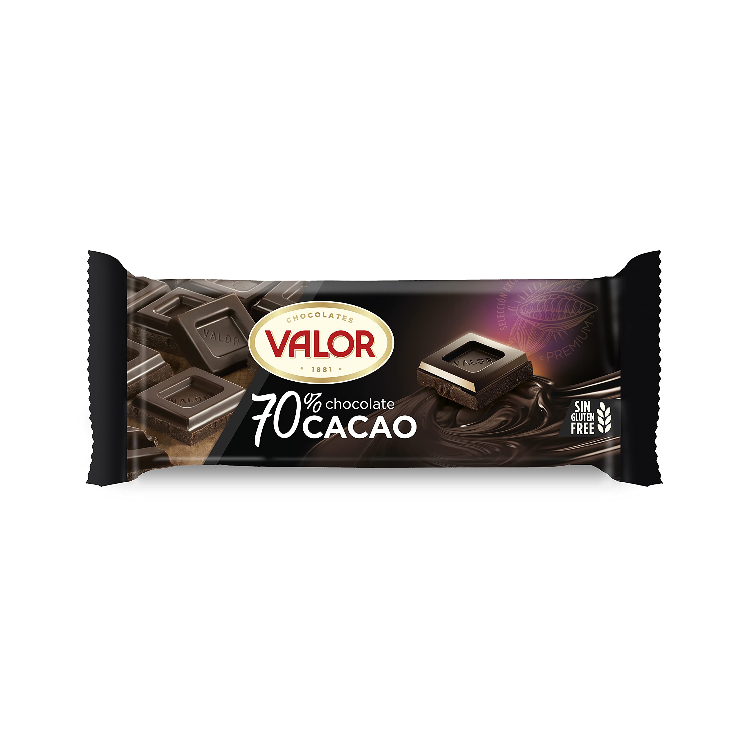Pasta de cacao, azúcar, cacao desgrasado en polvo, manteca de cacao, emulgente: lecitina (soja).