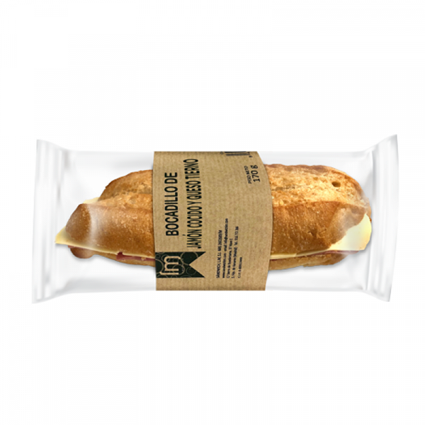 Pan (harina de trigo, masa madre natural (harina de trigo, levadura, agua y sal), mejorantes panarios (E 170, E 300), sal, agua y levadura), jamón cocido 32 % (jamón de cerdo (70 %), agua, sal, leche en polvo, azúcar, maltodextrina de maíz, aromas, estabilizantes (E 451, E 407), antioxidantes (E 316, E 331), conservador (E-250)), edam 9 % (queso edam (50 %), mantequilla, almidón, proteínas de la leche, gelatina, sales de fundido (E 452, E 339), sal, estabilizantes (E 417, E 407), conservador (E 202), colorante (E 160a)).
