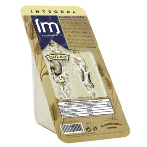 Pan (harina de trigo, masa madre natural (harina de trigo, levadura, agua y sal), mejorantes panarios (E 170, E 300), sal, agua y levadura), jamón serrano 14 % (jamón de cerdo, sal, azúcar, antioxidantes (E 300), conservadores (E 250, E 252)), preparado lácteo 14 % (grasa vegetal (palma), sólidos lácteos (lactosuero, leche en polvo desnatada), almidón modificado (patata y tapioca), queso, sales de fundido (E 452, E 331, E 330), sal).
